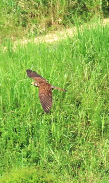 2度目の子育てに挑戦中のようです。バッタをくわえて飛び回る様子を橋の上から観察。多摩川の美しい緑を背景に、チョウゲンボウの褐色が躍動していました。